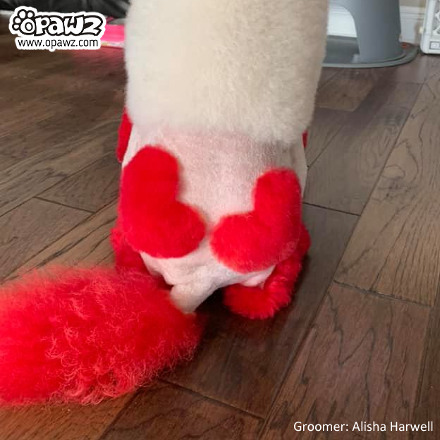 6. Some dogs’ ears will take color differently due to differing hair textures, and will be noticeable especially with the light color dyes such as charm pink and tender green.